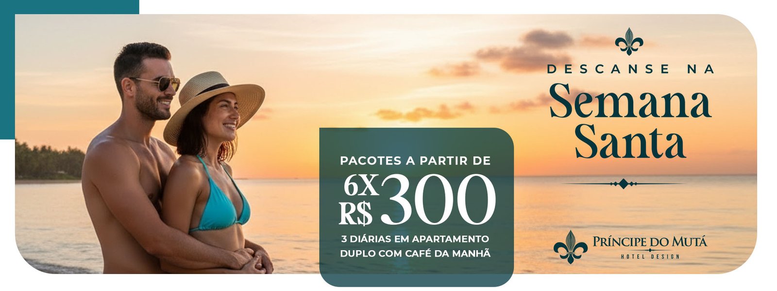 Desfrute de conforto e sofisticação à beira-mar. O Principe do Mutá situado em frente a praia do Mutá em Porto Seguro-Ba com águas calmas e cristalinas.